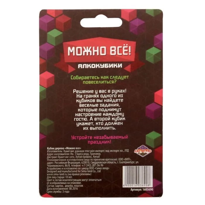 Купить кубик "можно все", алкокубики для принятия решений от 60 руб. с доставкой до пункта выдачи в Сердобске. Интернет магазин ДекаМаркет. Оплата при получении.